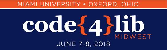 Visit the Code4Lib Midwest Conference website<https://wiki.code4lib.org/2018_Code4Lib_Midwest_Meeting> for more details.