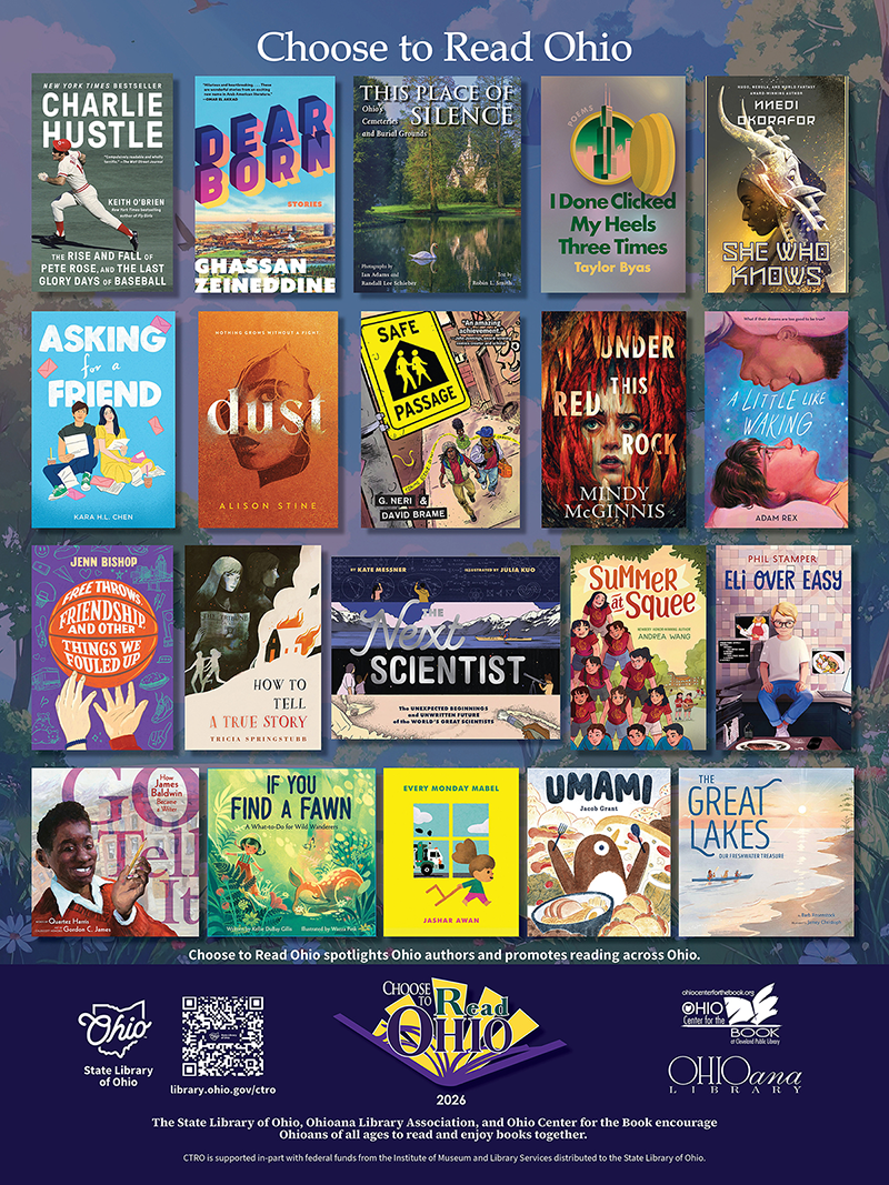 Read and share this announcement on the State Library of Ohio website<https://library.ohio.gov/home/news-and-events/all-news/20-books-selected-2026-ctro>.